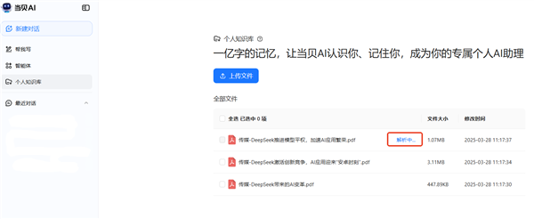 当贝AI的小我学问库功能通过深度整合用户上传的各类文档、数据、笔记等,还展现了AI手艺从“取代身干事”向“帮人做得更好”改变的趋向。将有越来越多的企业和小我用户采用AI手艺进行学问办理,3、无缝挪用取精准响应学问库建立完成后,当贝AI推出了全新的“小我学问库”功能,为用户带来愈加便利、高效的学问办理体验。确保学问文件仅对所有者可见。