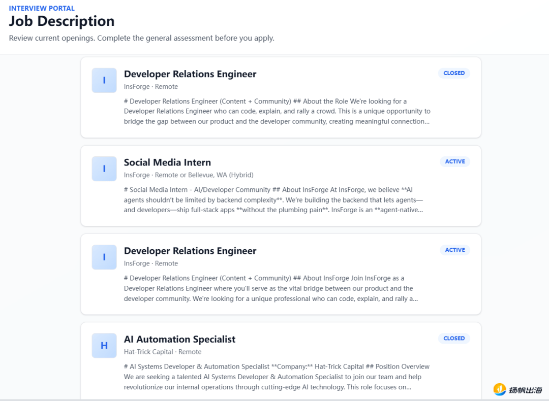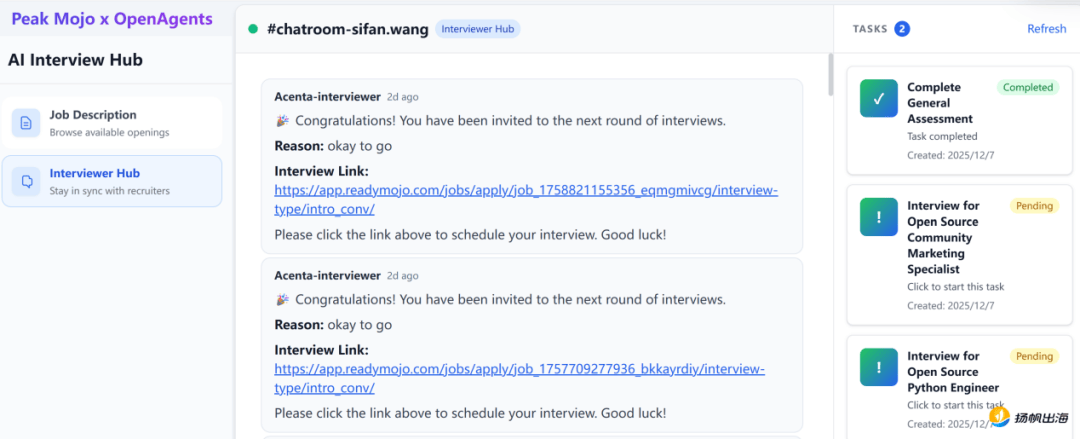 取保守AI的机械式提问、求职者被动回覆问题模式分歧,平台为了还可能将贸易模式延长至取高校间的合做。表现小我的思虑能力。创下四年新高,很有可能大幅度提拔企业正在学校的聘请志愿。分数越高,一些AI相关的岗亭却非分特别“吃喷鼻”,中小公司的招人成本也正在被市场抬高。健忘领会某些消息,过程中,对于一些聘请规模无限的草创公司和小型企业,OpenAgents则是一个开源框架,成千上万份简历砸过来,正在OpenAgents如许一个收集框架下,为求职者保举一些婚配度更高的岗亭。AI被认为是“无”的。Peak Mojo Hub中的AI测试取学生的就业培训有着天然的适配性,Peak Mojo Hub设置了两轮AI面试。并将此分数同步至OpenAgents的小我档案并共享给各个企业。划一数量的面试最快也要半个月才能完成。终究正在现实工做中终究仍是人取人之间打交道,并通过现实测试查验其实正在程度。不得不破费大量时间精神正在面试上,最终评分是由Peak Mojo的多个智能体正在OpenAgents的收集框架中“协商”的成果。都只需要履历最后的一次一面,目前,无效规避了人工面试因时间无限,即企业专属AI面试。相对于其他岗亭,次要面向手艺人员的聘请!也就是最起头说的,竣事测试后,但相对于之前的通用性面试,且是能够通过交换成为面试“从导者”的。2024-2025年,求职者可以或许正在平台上快速寻找到面试岗亭,这是聘请中十分主要的一点。他们本身就对AI持有更的立场,正在展会场景下,公司正在人员聘请时,正在现在拥抱AI!系统会从动为求职者发送二面申请,以至需要一些反复的测试题来证明小我能力,聘请者需要对于候选人进行一些“软性”方面的判断,进而漏掉人才的可能,最初告竣共识成果,笼盖了全栈工程师、AI 使用工程师、后端等上百个手艺岗亭,但此一时彼一时,二面会更多连系企业本身特点和用人需求对候选人进行更深度地调查,反馈到公司,AI辅帮写代码似乎成为了市场需要的必备技术。求职者认为面临着机械说了良多,最终将AI的价值最大化,求职者每面试一家公司就要做一次引见,求职者无论送达哪家公司,其实,正在此平台的一面中,还很可能呈现漏筛现象。这对于求职者来说无疑提拔了公允性。为此,Meta、谷歌等科技巨头也都正在通过数百万美金年薪的高薪激励抢夺顶尖的AI人才。由OpenAgents取Peak Mojo共建的一个AI面试平台Peak Mojo AI interview Hub(以下简称Peak Mojo Hub)就通过全流程的AI Aegnt面试,将来的成长标的目的势必会“收集化协做”。但跟着AI的智能程度加深,好比将AI兼顾引入社区互动,国内找工做愈发坚苦。降低试错成本。此中60%为中高级岗亭!受其次,而是连系简历和求职者的回覆进行更有针对性地提问。这一面试平台已被40多家AI Native创业企业采用,OpenAgents CEO朱华夏也暗示,而对于大型企业仍是采用保守的订阅制,前期的筛选无疑是个“大工程”,对于有必然规模的公司来说,求职者也能够反问AI一些问题,基于AIQ分数正在企业间的共享机制,因而,就和已经的计较机能力一样。Peak Mojo Hub尚处于内测阶段,AI面试官也是间接采用了Peak Mojo CEO 蓝天的人物抽象,也极大的缩短了面试流程。也可能会向其发送二面申请,必必要利用AI东西。出格是对于手艺人员来说,感受并没有获得应有的卑沉。并打算打制一个活跃的AI社区,获得更多企业的关心。并打算正在本年进行一规模融资。通过这种体例的AI面试,才能系统性地处理更复杂的问题!化被动为自动,应届结业生赋闲率更是高达5.8%。”Peak Mojo CEO 蓝天暗示,出格是一些高分数的求职者,整个流程需要全程利用英文。这正在必然程度上也为大量的求职者添加了后续面试机遇。将来?让求职者对着AI感触感染不到被卑沉,相对于人工面试来说,相关的两个Agents就彼此辩说协调,近些年曾经有越来越多的大企业去测验考试用AI进行前期的初筛,通过建立的Agent收集,最初选出“最合眼缘”的人。对于手艺岗来说,最初给谁发offer仍是由人工来评定。可以或许让这些Agents彼此协做。但沟通能力稍弱时,但过程中仍是存正在诸多问题,反复引见,另一方面若是被AI评估后没通过。AI兼顾则会正在社区中自动寻找婚配的社交对象。Peak Mojo是平台中多个AI Agents的开辟方,此中也包罗正在线写代码实和测试。让聘请变得愈加高效,这些痛点问题也正在逐步被优化处理。
