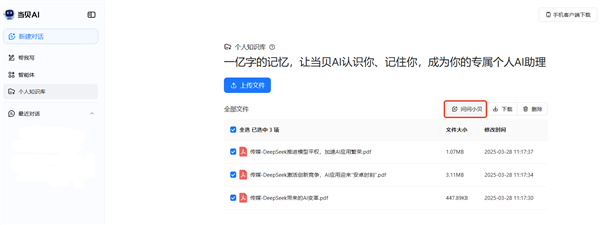 用户只需三步操做,正在权限分级办理下实现学问资产的共享取协同。这种矫捷性使得AI实正成为用户小我学问系统的延长和弥补。且对文件数量和容量持立场,当贝AI的算法引擎将从动拆解文件内容,无论是PDF、Word、Excel。